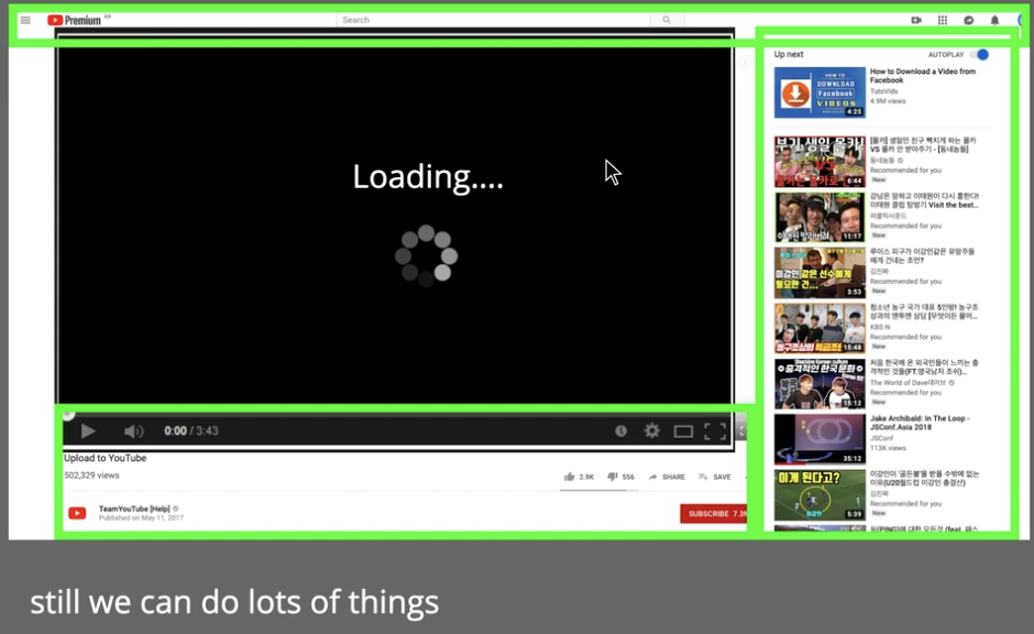 유튜브 영상의 재생을 누르고 영상의 리소스를 받아오는 로딩이 될 동안 우리는 브라우저에서 아무 클릭 등 활동을 하지 못하고 로딩이 완료되기만을 기다려야 할 것이다.