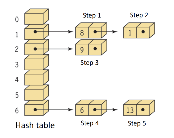 해당 Hashed Value에 이미 값이 있으면 그 뒤에 chain으로 연결시키는 것이다.