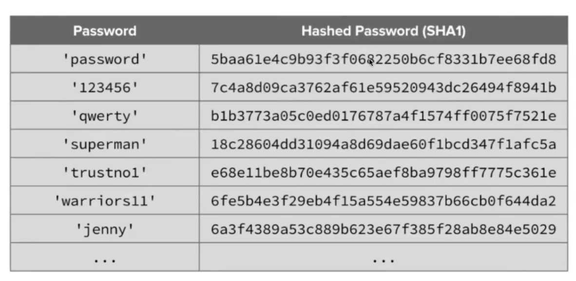 salt사용: (암호화 하려는 값) + (Salt용 값) => (hash 값)