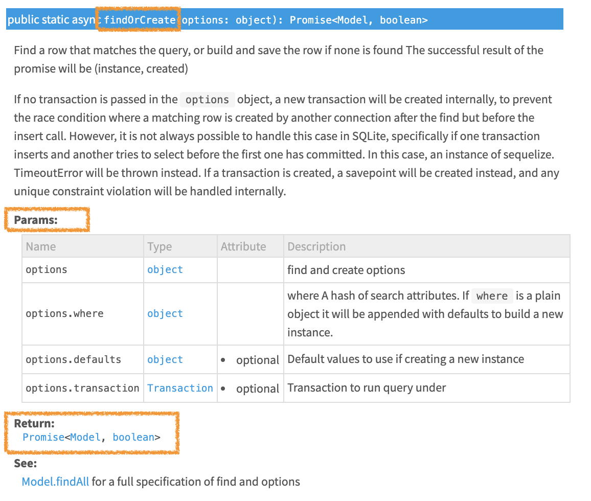 (공식 홈페이지: sequelize.org/master/manual/model-querying-finders.html#-code-findorcreate--code- , sequelize.org/master/class/lib/model.js~Model.html#static-method-findOrCreate)