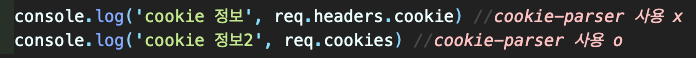 console.log('cookie 정보', req.headers.cookie) //cookie-parser 사용 x