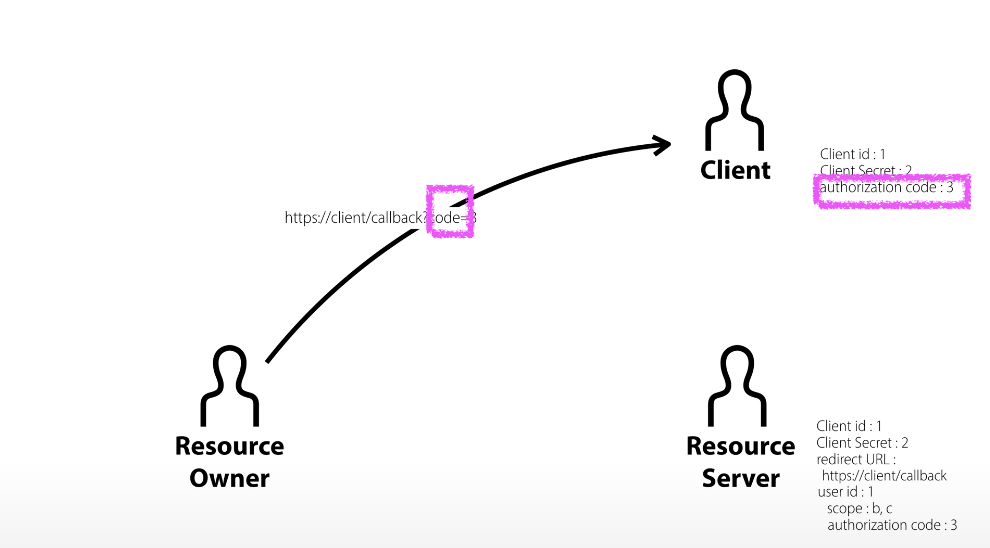 3. 그렇게 Client는 redirect URL 뒤에 params 형태로 담긴 authorization code를 알게 되는 것이다.