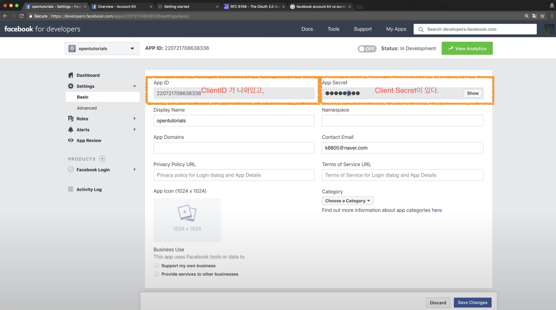 - Client ID: 내가 구현 할 어플리케이션인 Client 를 식별 할 수 있는 ID
