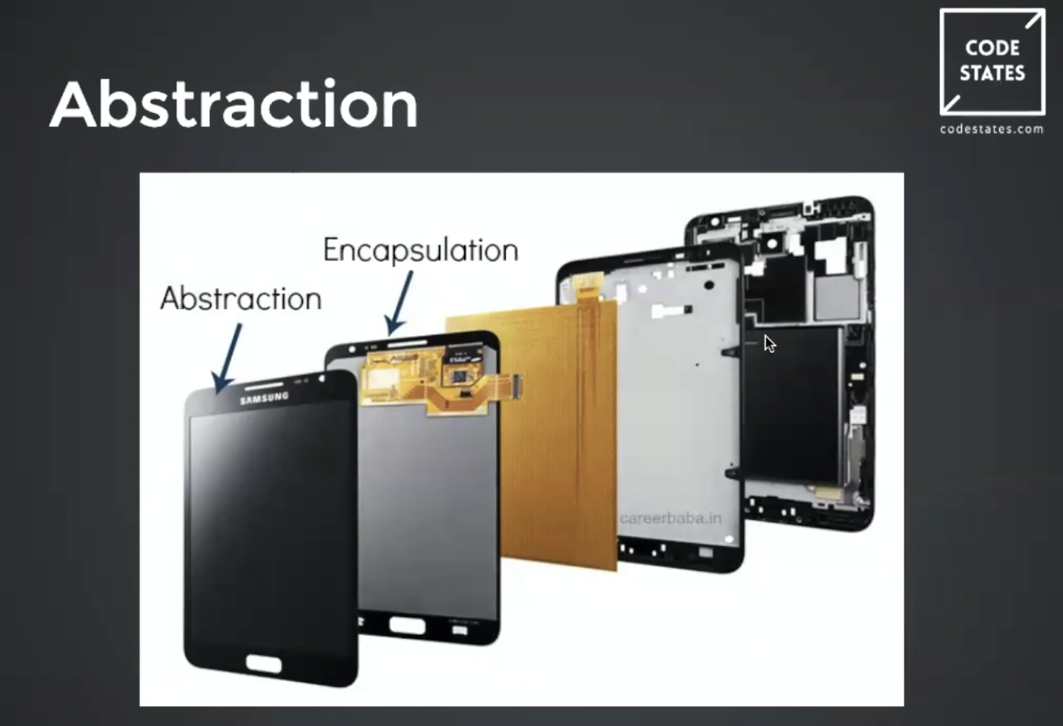 2) Abstraction: 속은 매우 복잡하게 되어 있는데 사용자가 보는건 매우 간단하게 보이는 것