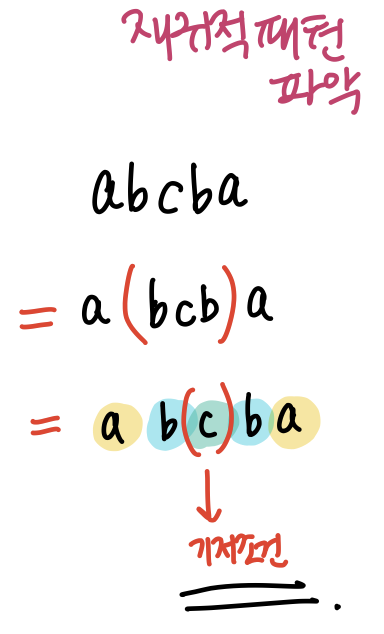 1. 함수의 역할을 말로 정확하게 정의한다. => isPalindrome(myString, start, end): myString의 start부터 end까지가 팰린드롬이면 true, 아니면 false을 반환한는 함수