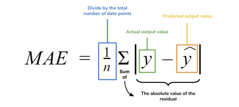 sklearn.metrics.mean_absolute_error(y_true, y_pred, *, sample_weight=None, multioutput='uniform_average')