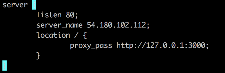 '클라이언트가 54.180.102.122:80라는 Proxy Server 주소로 요청하면 현재 같은 내부망에서 실행되고 있는 http://127.0.0.1:3000 으로 요청을 중계해준다.'(Reverse Proxy) 는 의미이다.