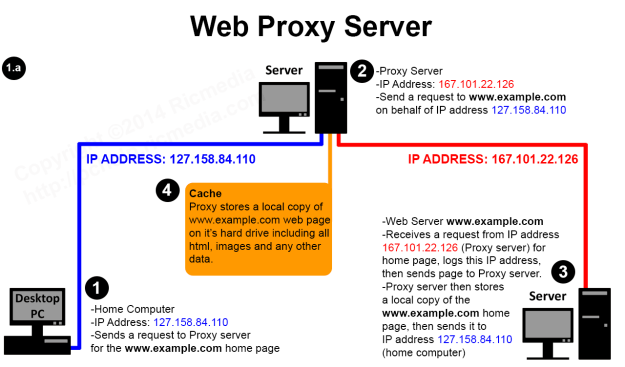 이렇게 하는 것의 장점은 클라이언트가 서버에 직접 접근하는 것을 막고, 서버가 응답받은 IP은 Proxy Server의 IP이기 때문에 서버는 클라이언트가 누군지 알 수 없다. 또한 Proxy Server가 중간에서 requests, responses, their sources and their destinations들을 추적할 수 있고 정해진 사이트만 연결하게 설정하는 등웹 사용 환경을 제한할 수 있으므로 기업 환경등에서 많이 사용한다.