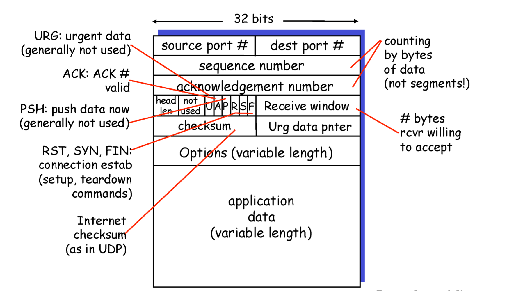 sequence number is byte stream "number" of first byte in segment's data.