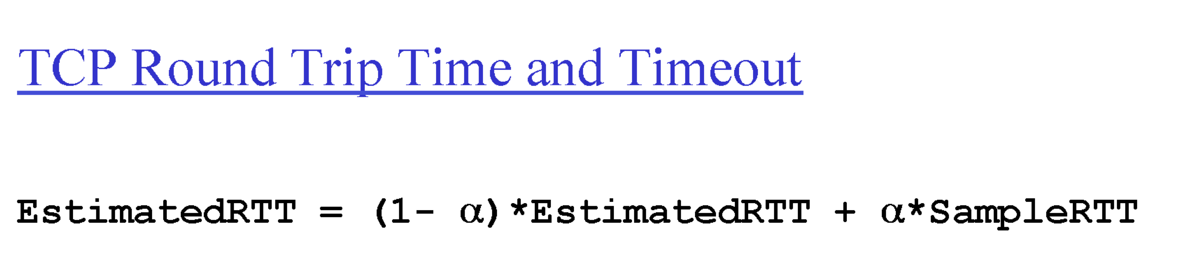 EstimatedRTT = (1-α)*EstimatedRTT + α*SampleRTT