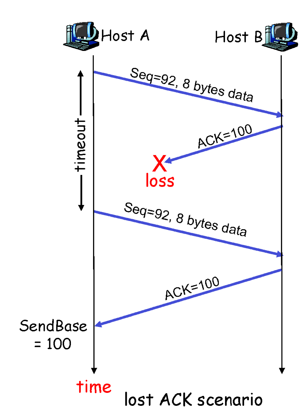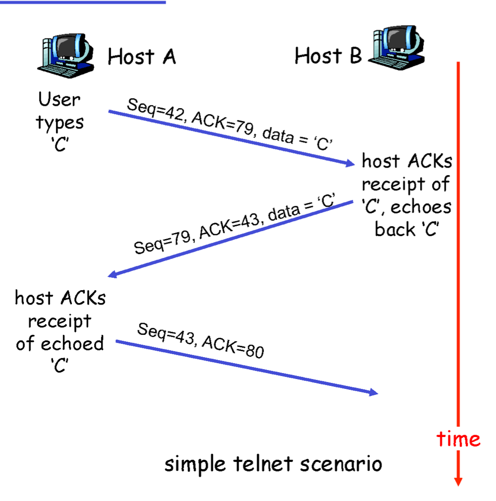 Client인 Host A, 그리고 A가 보내는 데이터를 그대로 출력만 해주는 echo server인 Host B가 있다고 가정하자.